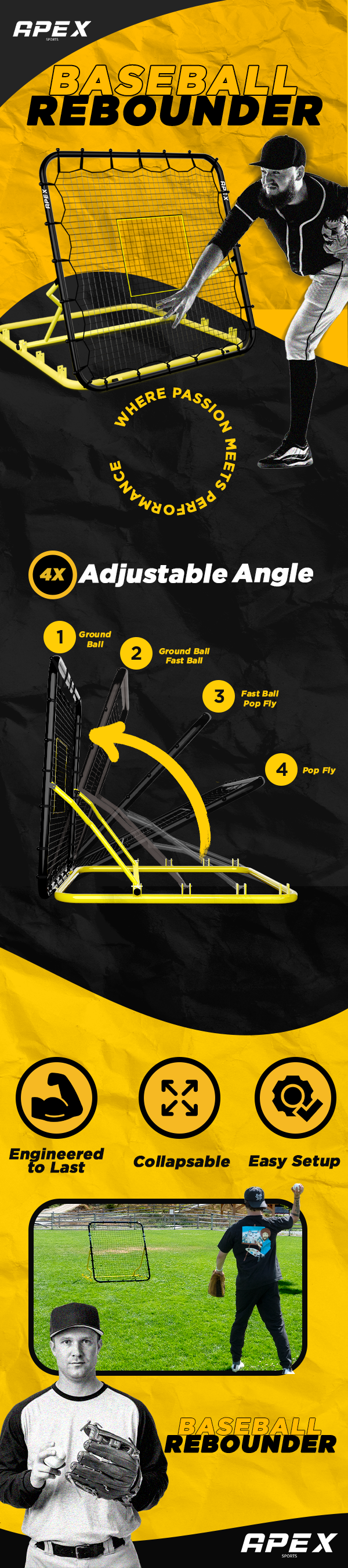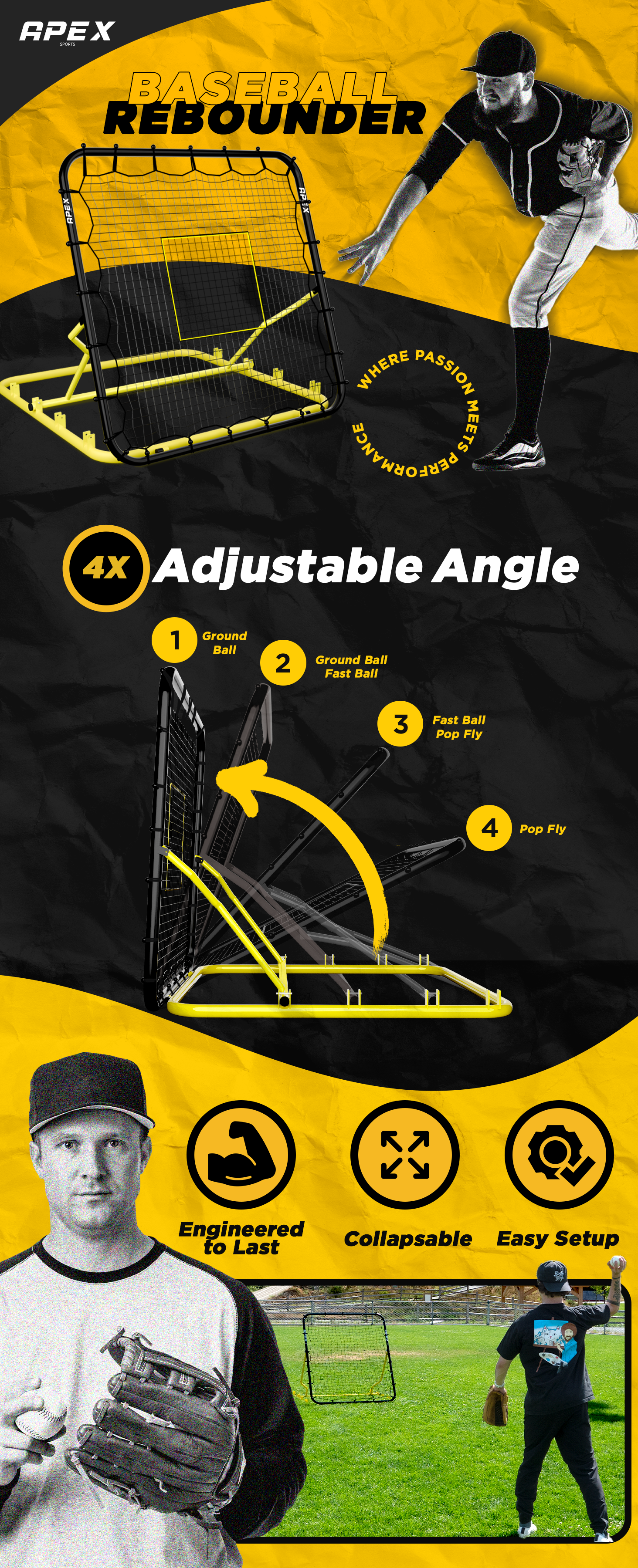 The Apex 4x4.5 ft Baseball Rebounder is built for baseball and softball drills. With adjustable angles for varied ball returns, it helps athletes improve agility, reflexes, and overall technique through consistent, game-like reps.