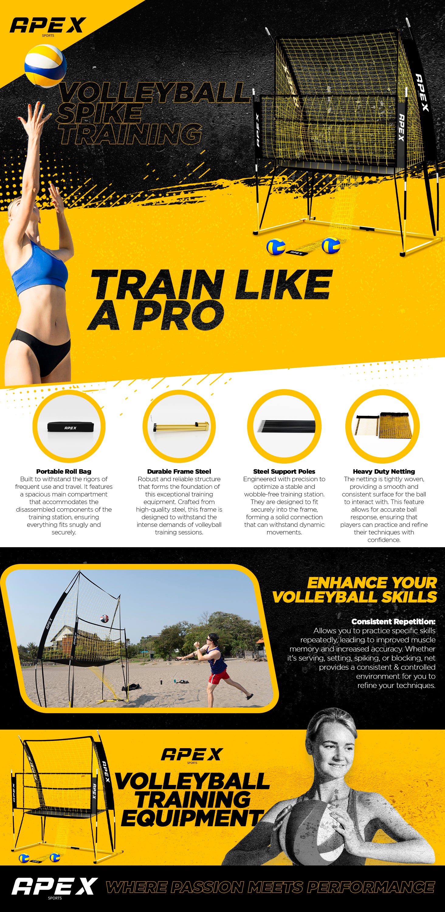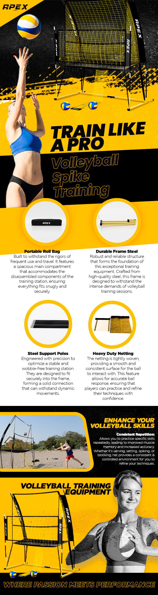 - Improve Skills with Apex Sports Volleyball Training Net System: Elevate your game with our sturdy and adjustable net system. Enhance accuracy, timing, and technique in game-like conditions, thanks to its durable construction and customizable features.